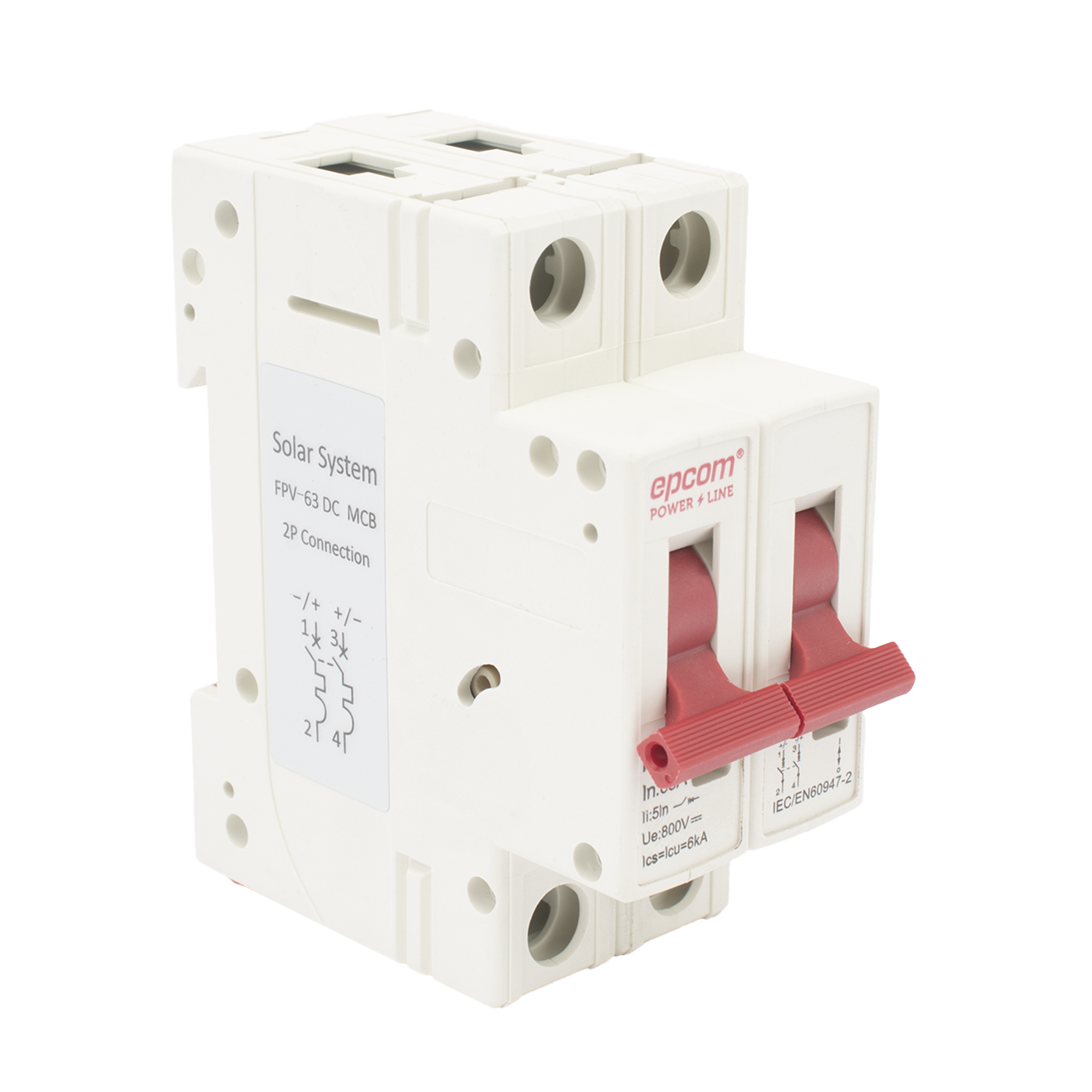 FPV632PC63|Protección Térmica/ Interrupción 2P, 63 A, Corriente Directa 800 Vcc para Aplicación Fotovoltaica Montaje Riel DIN