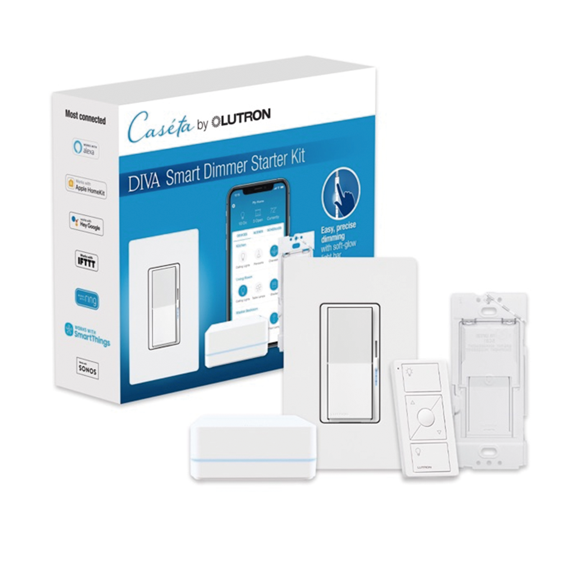 DVRFBDG1D|(Caseta Wireless) Kit Hub controlador, atenuador, control remoto PICO, base de pared y tapa.