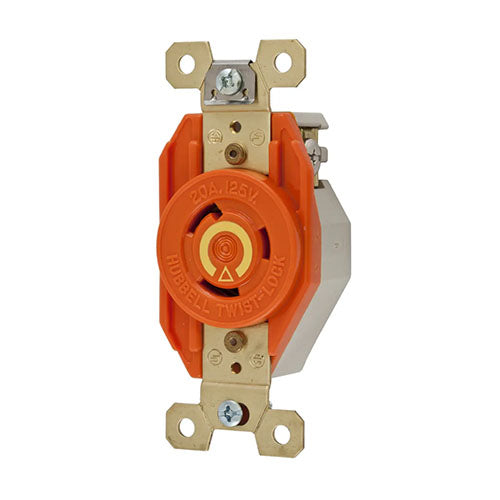 Dispositivos de bloqueo, Twist-Lock®, receptáculo industrial con conexión a tierra aislada, empotrable, 30 A, 125 V, conexión a tierra de 2 polos y 3 cables, L5-30R, terminal de tornillo, naranja.