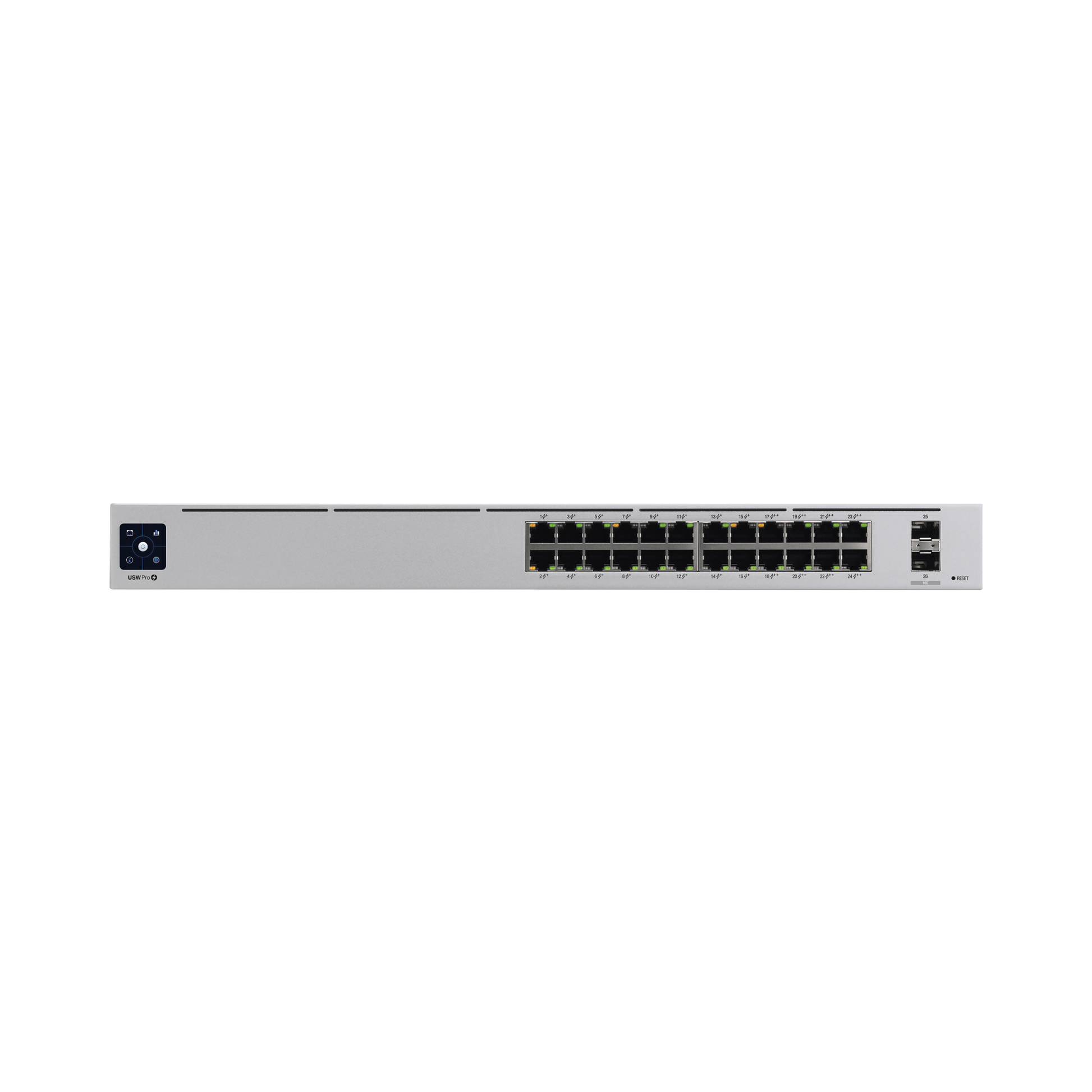 USW-PRO-24-POE|UniFi Switch USW-Pro-24-POE Gen2, con funciones capa 3, de 24 puertos PoE 802.3at/bt + 2 puertos 1/10G SFP+, 400W, pantalla informativa